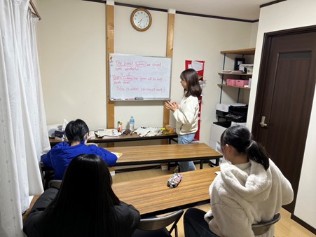 金曜日の文法の授業を担当しています。 文法は家の土台のようなものです。 英語学習の初期段階で正確な文法の知識を身に付けることはとても大切です。 堅苦しくなりがちな文法の学習内容をなるべくわかりやすく説明することを心がけています。
